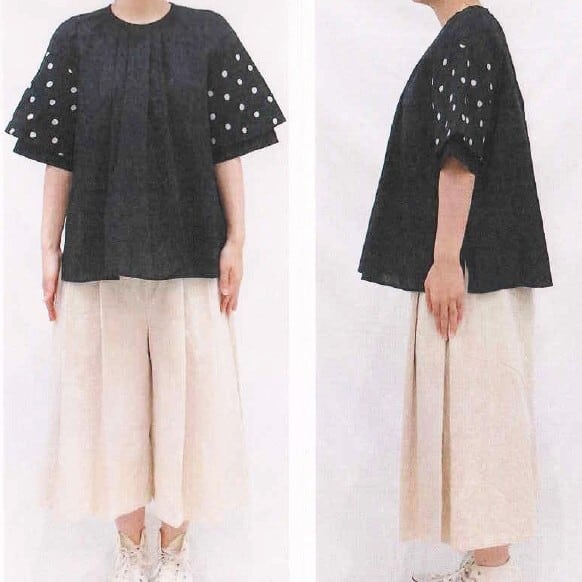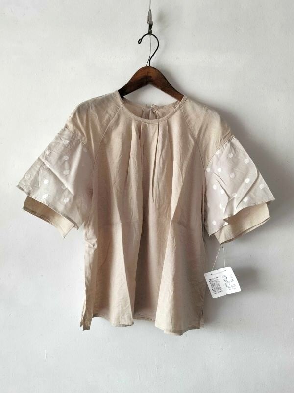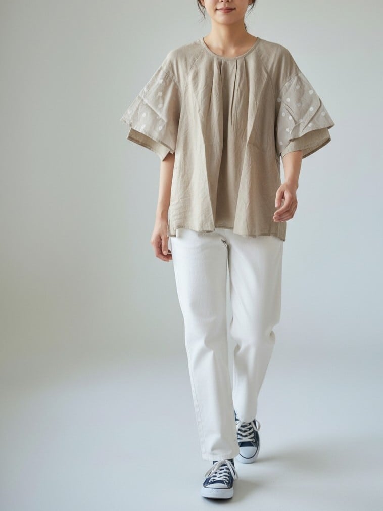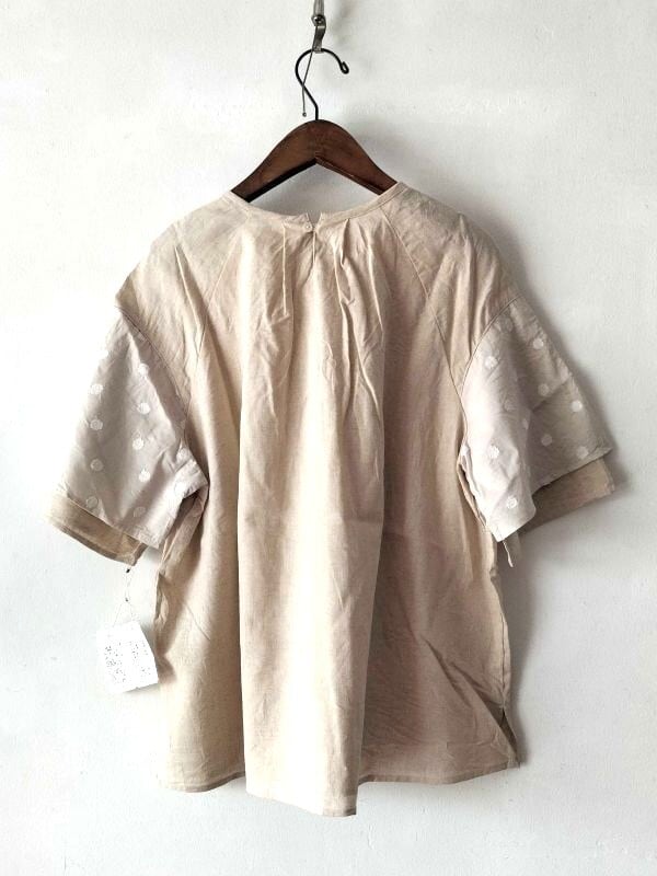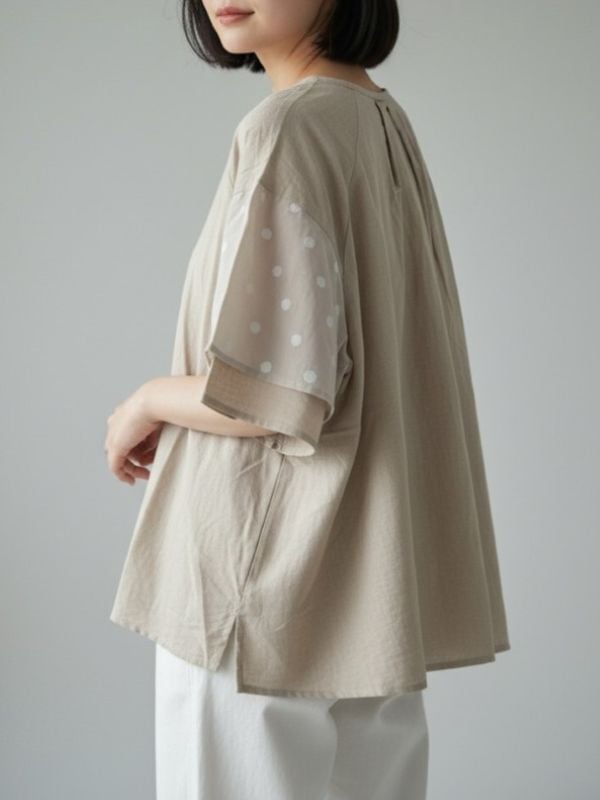 ラグラン異素材切替 プルオーバー(綿麻×ローンドット)